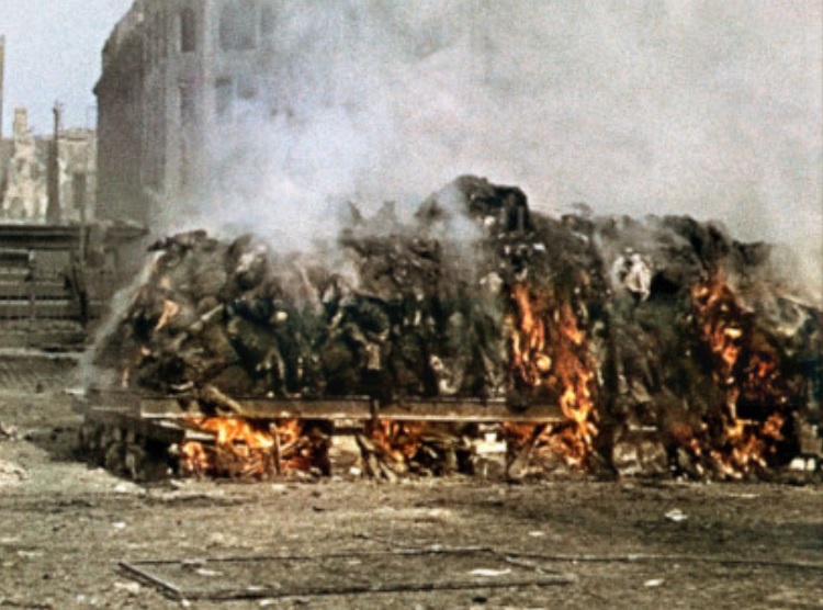 bombsaway wrote: Tue Oct 21, 2025 4:42 pm There doesn't seem to be any wood between the bodies, so how would the ones at the top burn? Logically to me it seems like liquid fuel was used.