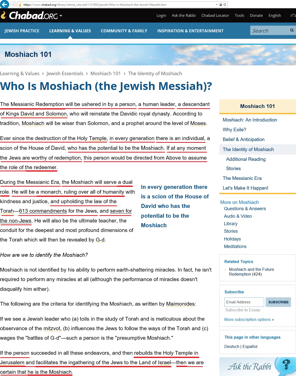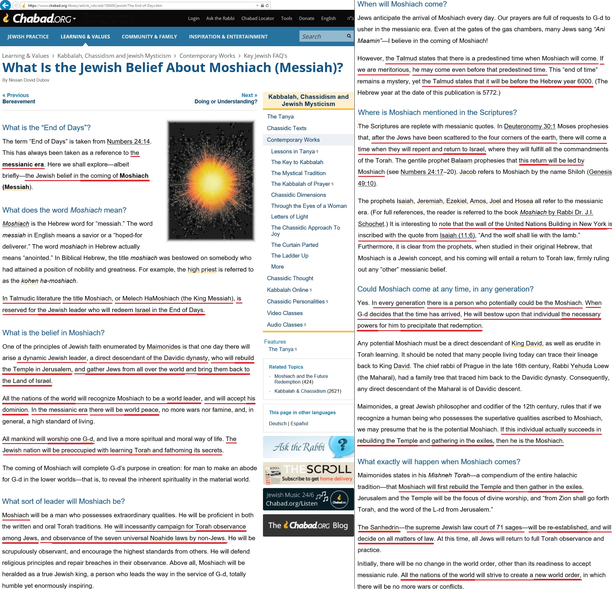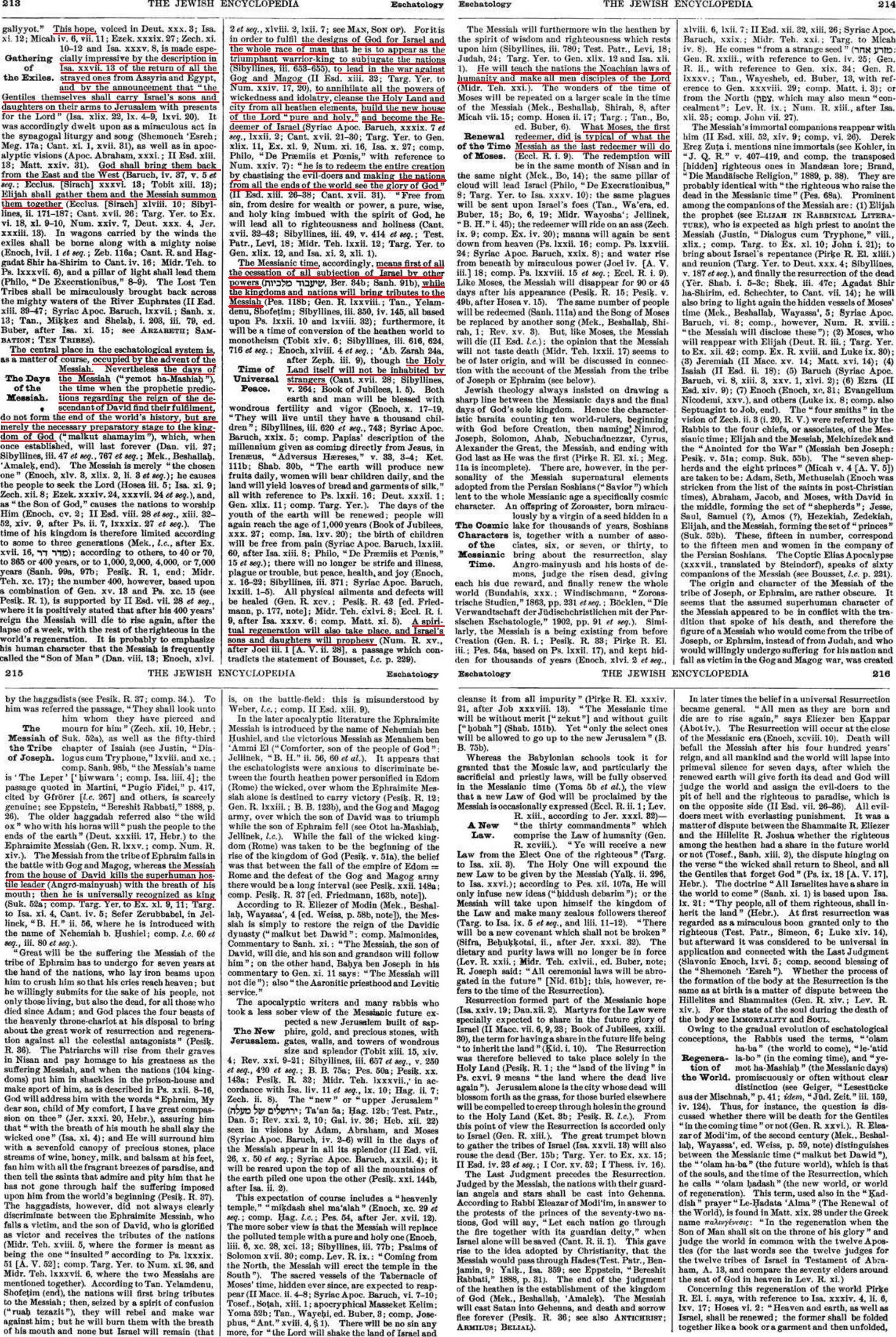 If you want to investigate this topic more deeply, you can look for more info about: the Messiah (Hebrew: Moshiach), the Messianic Age, the redemption, the world to come, the 7th day, the end of times, the war of Gog and Magog and the Third Temple.