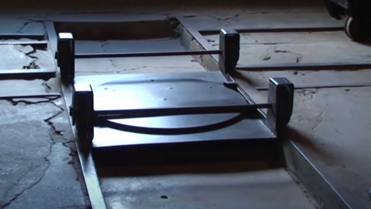 From the main track to the oven entrance here is a slide I made some time back. Works like a train car. the tracks to the oven align the trolly with on the oven opening "X" axis